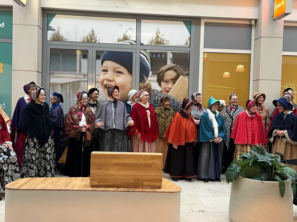 14 december 2025 Kloosterhof te Noord-Scharwoude. Bij de parochie Sint Jan de Doper traden we op in onze Dickens-outfit. We werden gastvrij ontvangen en het publiek was getuige van de première van Patapan, ons nieuwe kerstlied.
